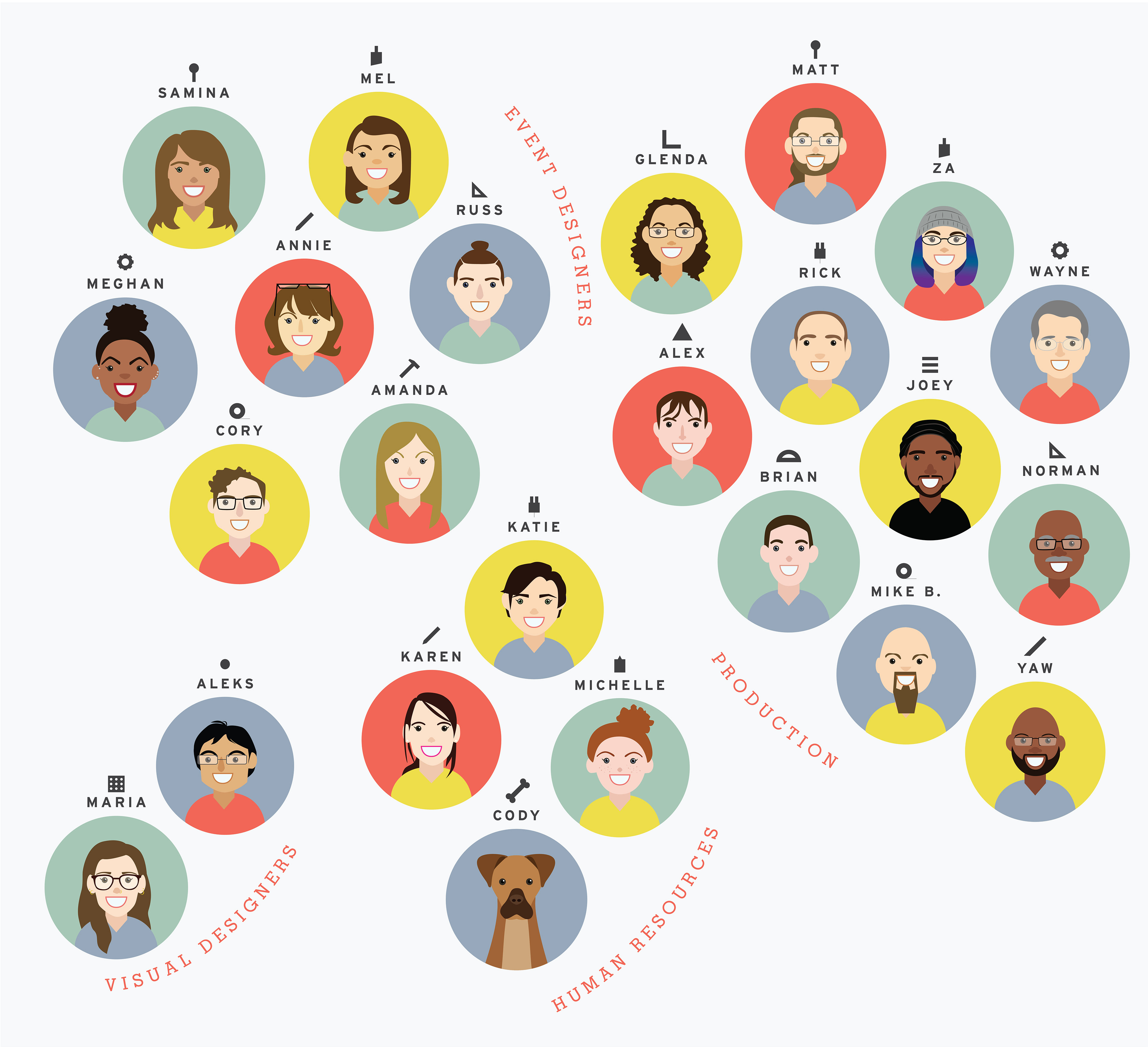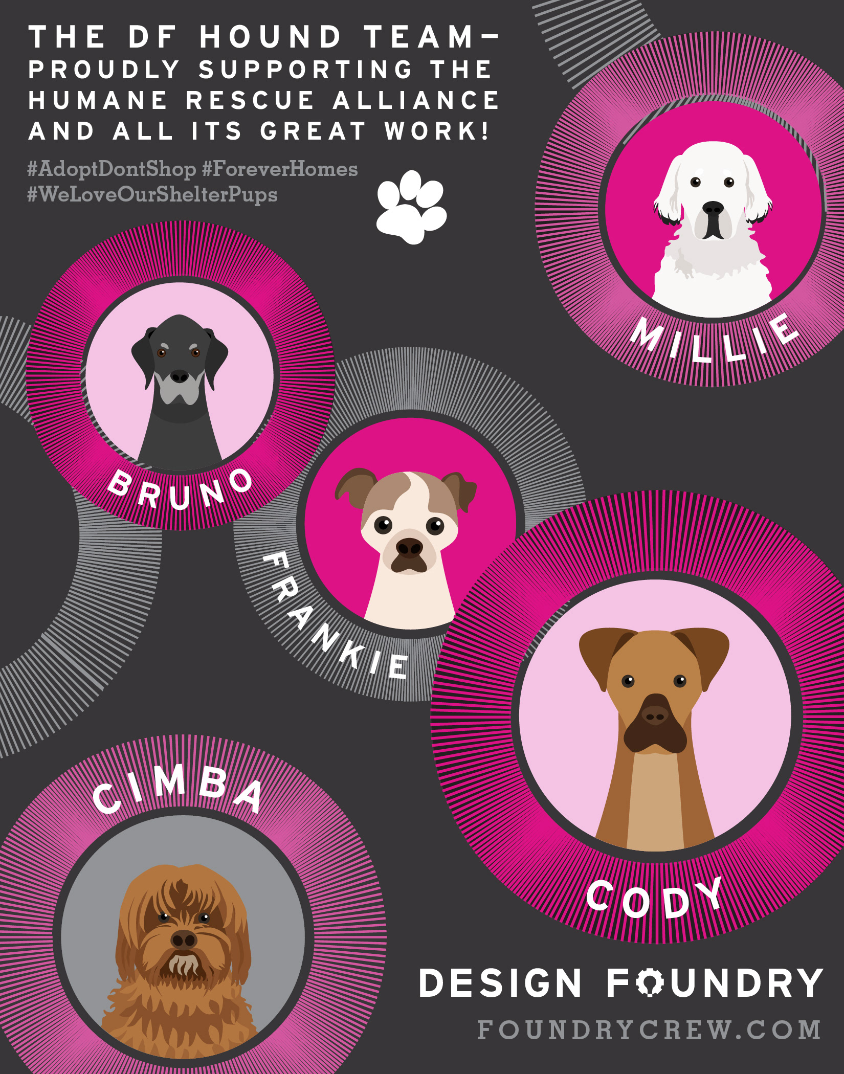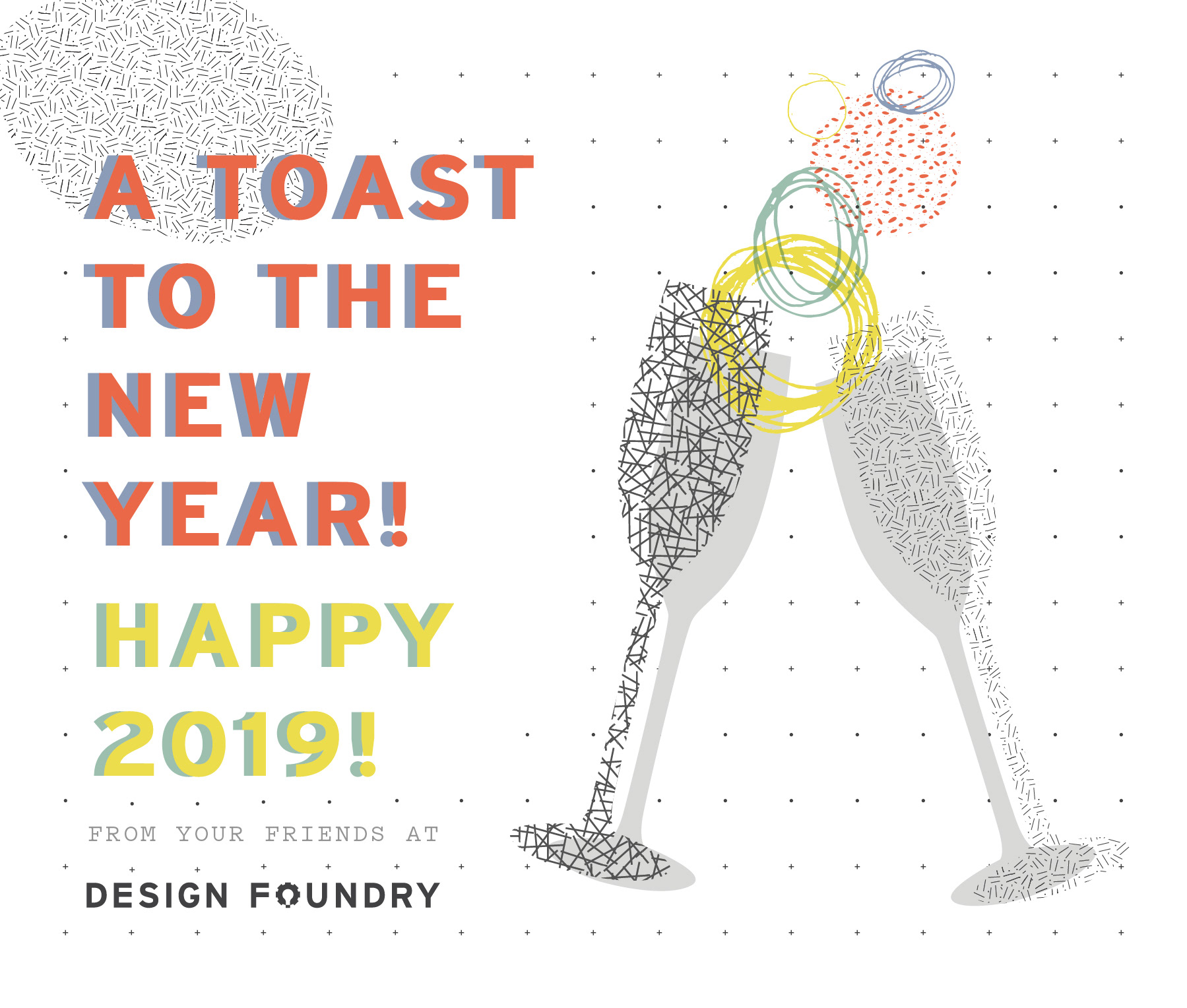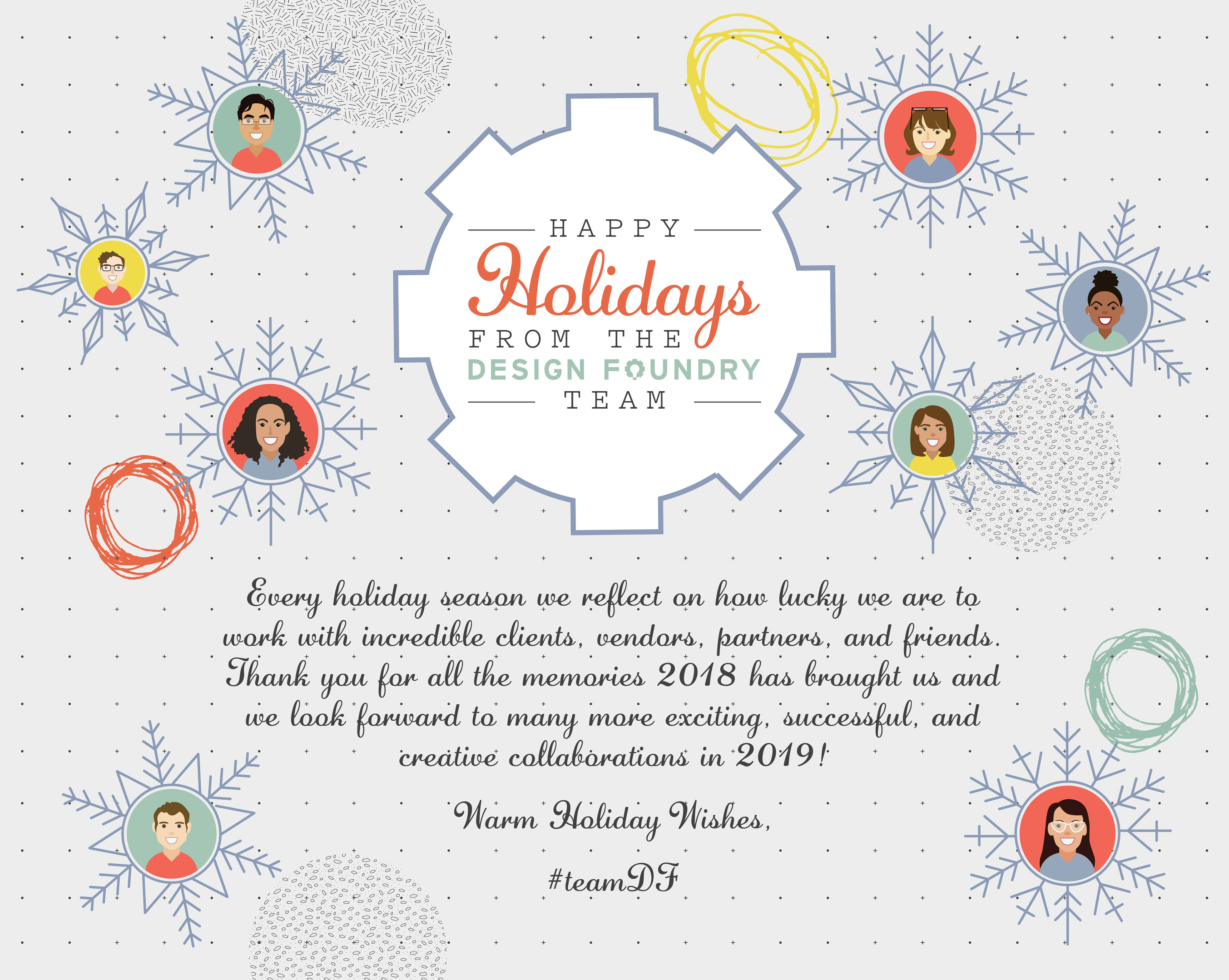 Brand illustrations, collateral and ephemera for Design Foundry. Created under the direction of Visual Designer, Aleks Beltran, and following brand guidelines.